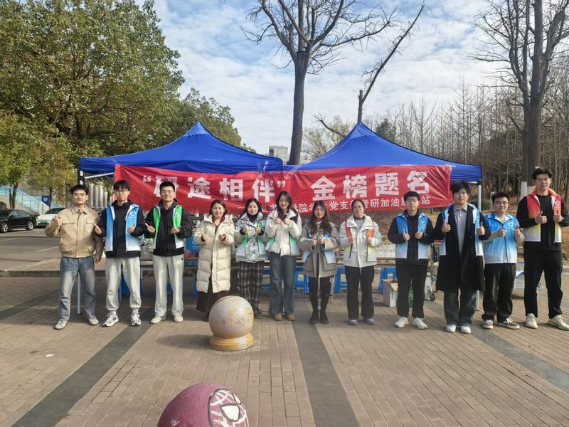 岁末凛冬至,研途追梦忙。当考研冲刺的号角吹响,恰逢冬至团圆的暖韵袭来,为让逐梦学子在寒冬中感受到实实在在的关怀与力量,2025年12月20日至21日,百合小说 2022级学工队伍牵头的党员加油服务站,在图书馆南侧与鼎新大道交叉路口温情启幕、持续值守。同学们以党员的初心、志愿者的热忱,为即将奔赴考场的学子们注入暖流,陪伴他们在逐梦路上无畏前行。