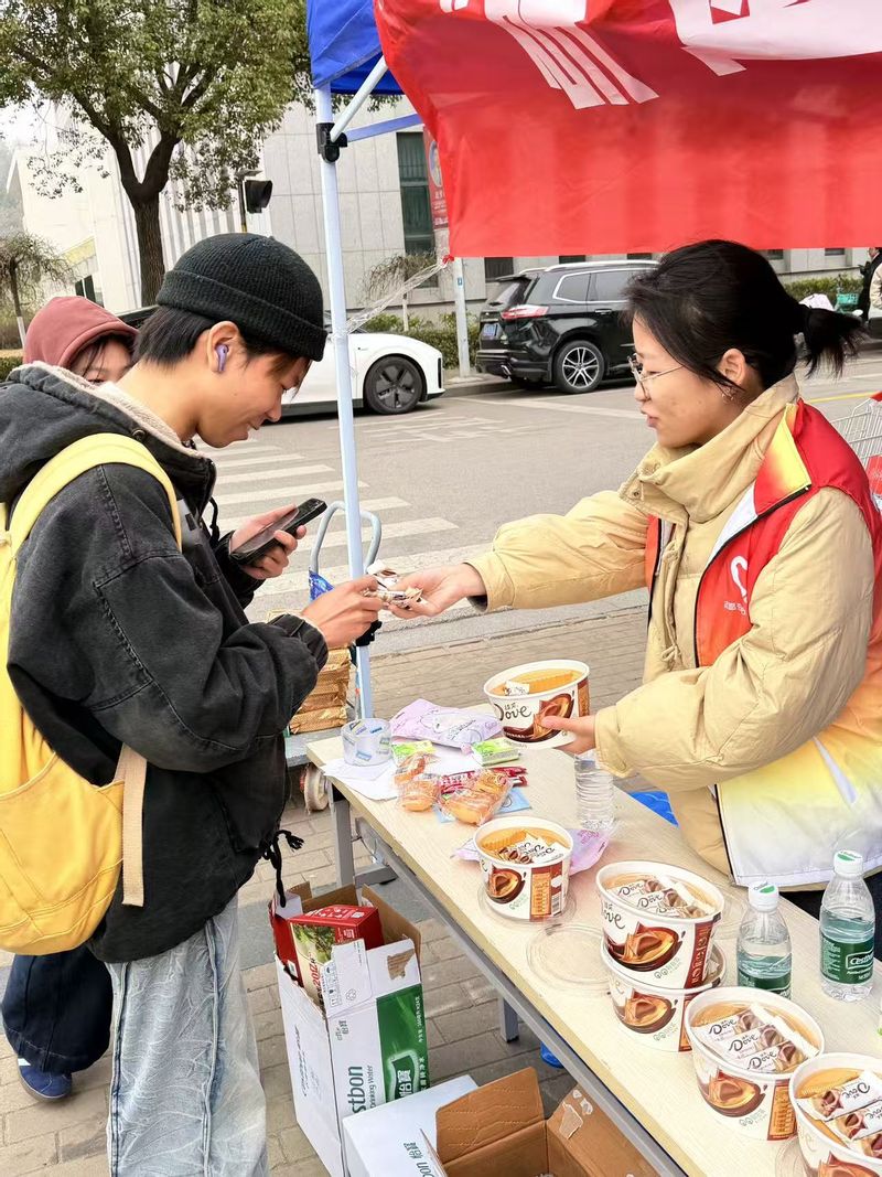 在学院党委副书记徐磊的带领下,各党支部老师们、志愿者们,面带微笑主动迎向考生,将饱含关怀的物资递到他们手中。“天儿冷,贴个暖宝宝暖身,答题更顺手!”“喝杯热豆浆暖暖胃,保持好状态!”一句句朴实的叮嘱搭配“金榜题名”“一战成硕”的真挚祝福,温暖驱散了学子们考前的紧张与冬日的寒意。